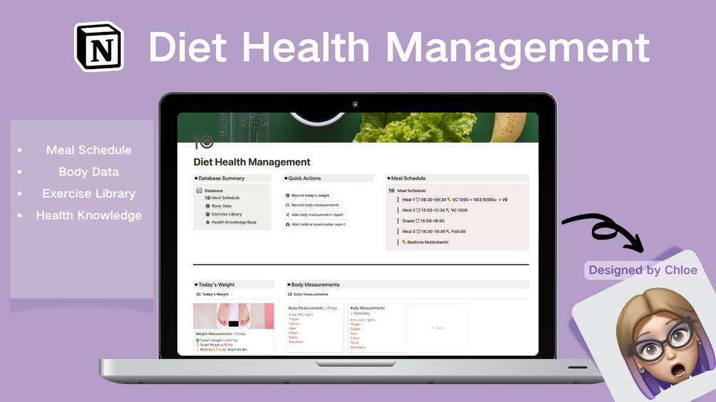 π Hey there, this is ChloeHub! Welcome to the Diet Health Management Notion Template!