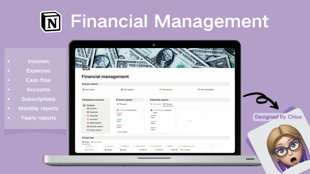 You can quickly add an expense or income by clicking a button to record your daily financial activities. This template will automatically generate the day's cash flow as well as monthly and annual reports.