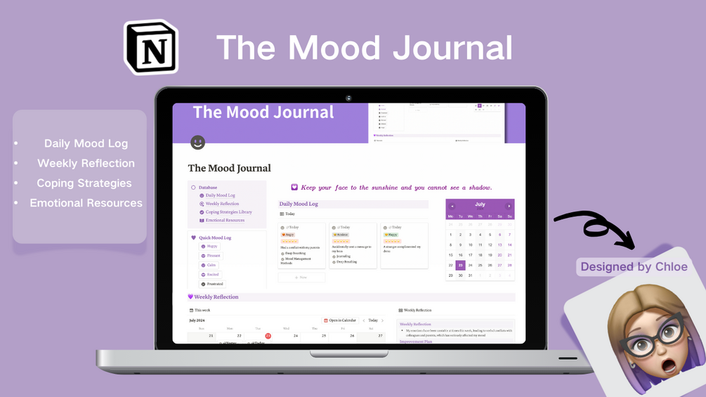 This is a template designed for quickly recording your mood each day. It helps you improve your emotional control through reflection and review, making your life more enjoyable and manageable.